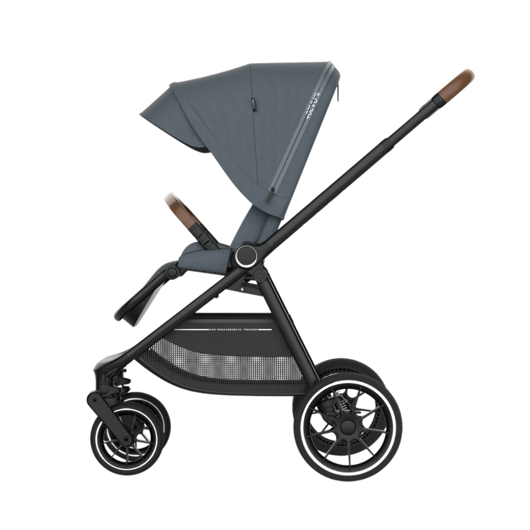 Mukavuus ja mukautuvuus: Istuin on suunniteltu helposti säädettävissä istuma-asennosta täysin makuuasentoon, ja säädettävä jalkatuki lisää entisestään mukavaa ajoa. Lisäksi etutanko on suunniteltu kääntymään helposti sivulle, joten lapsen nostaminen ja nostaminen on helppoa.