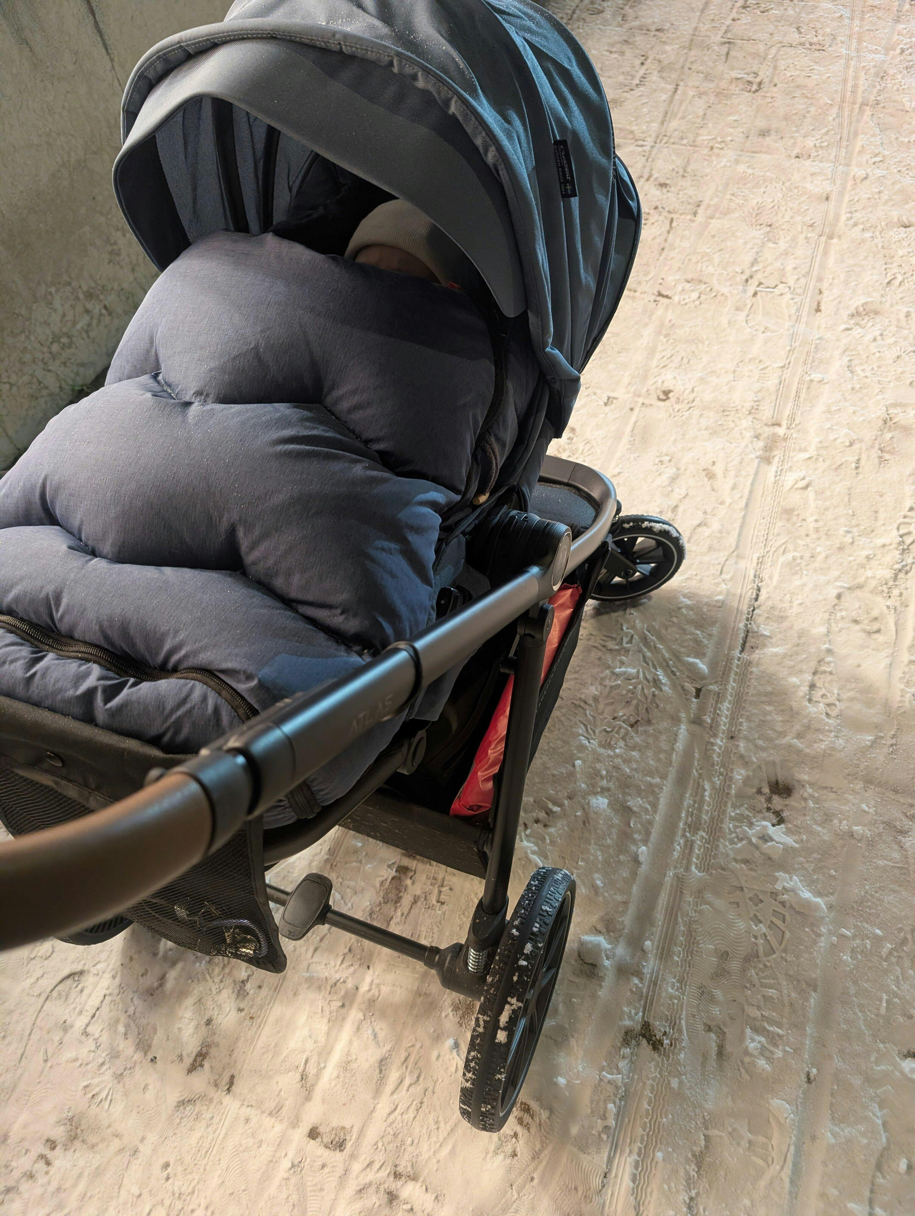 Jag är över lag väldigt nöjd än så länge (har bara använt vagnen i en vecka så kan inte säga någonting om slitstyrka). Vagnen är fin, känns väldigt rejäl och är väldigt prisvärd. Jag har provat flera dyrare vagnar som kännts mycket rappligare. Atlas är stadig. Liggdelen till Atlas köpte jag inte för jag föredrar en vintage jättestor Emmaljunga liggvagn. Men sittdelen köpte jag och den är jättebra, min fyra månaders bebis gillar liggläget. Den är stor och kommer räcka länge (längst på marknaden?!). Hjulen är stora och bra om man vill kunna använda vagnen på grusväg t.ex. Bra att dom är låsbara för att kunna köra i snön. Dämpningen är fantastisk. Jag trodde att inget kunde slå min 80-tals liggvagn som jag har gått elljusspåret med men Atlas är lika bra eller bättre i terräng.